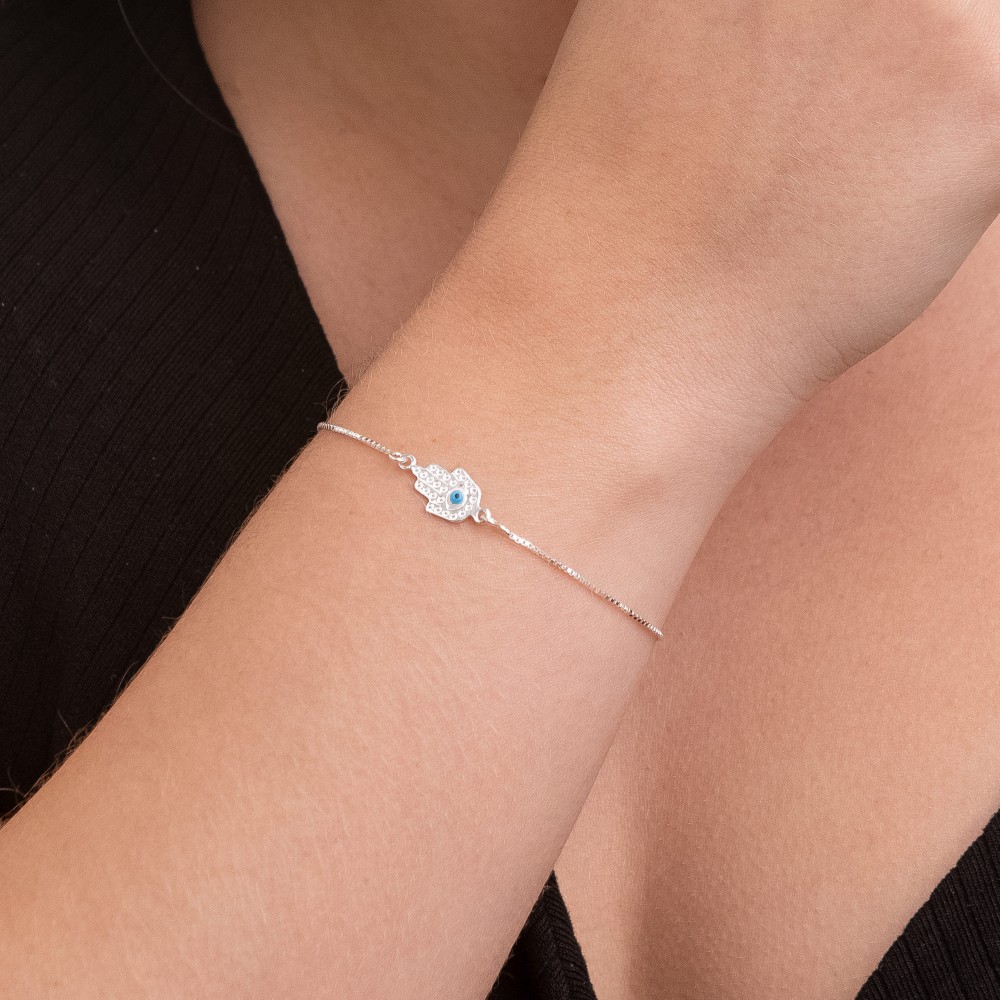 Pulseira Veneziana em Prata 925 com Mão de Fátima e Olho Grego: Proteção e Estilo em Seu Pulso
